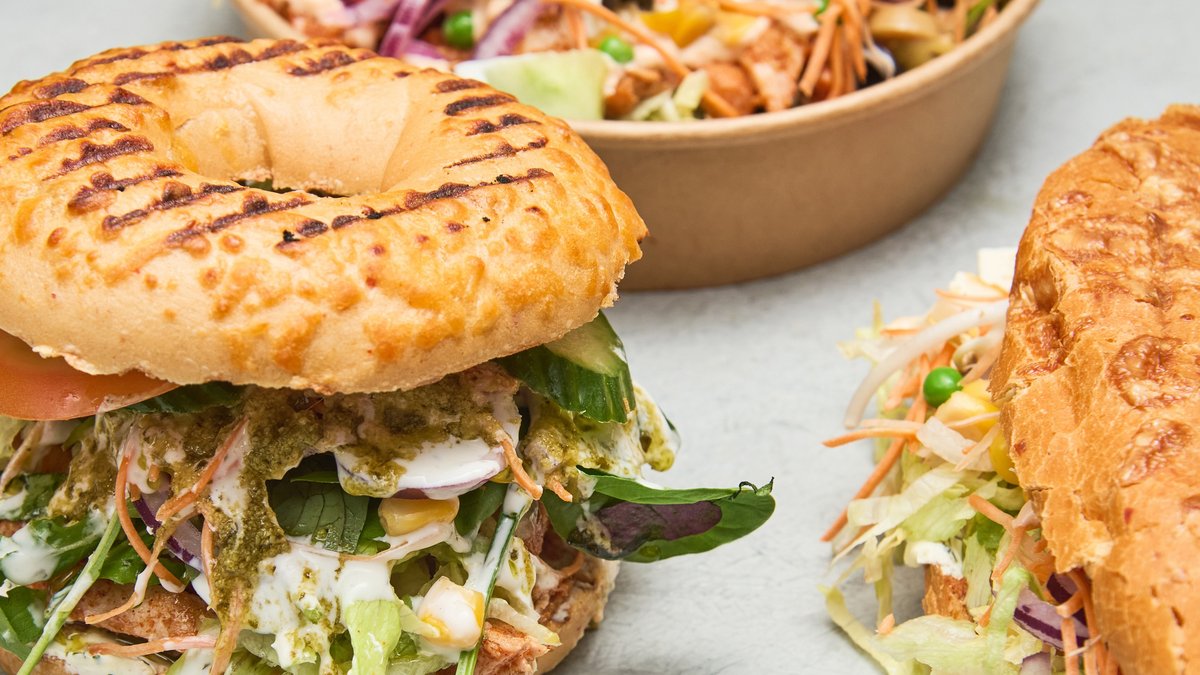 Lækre bagels, sandwiches, salater, og milkshakes!