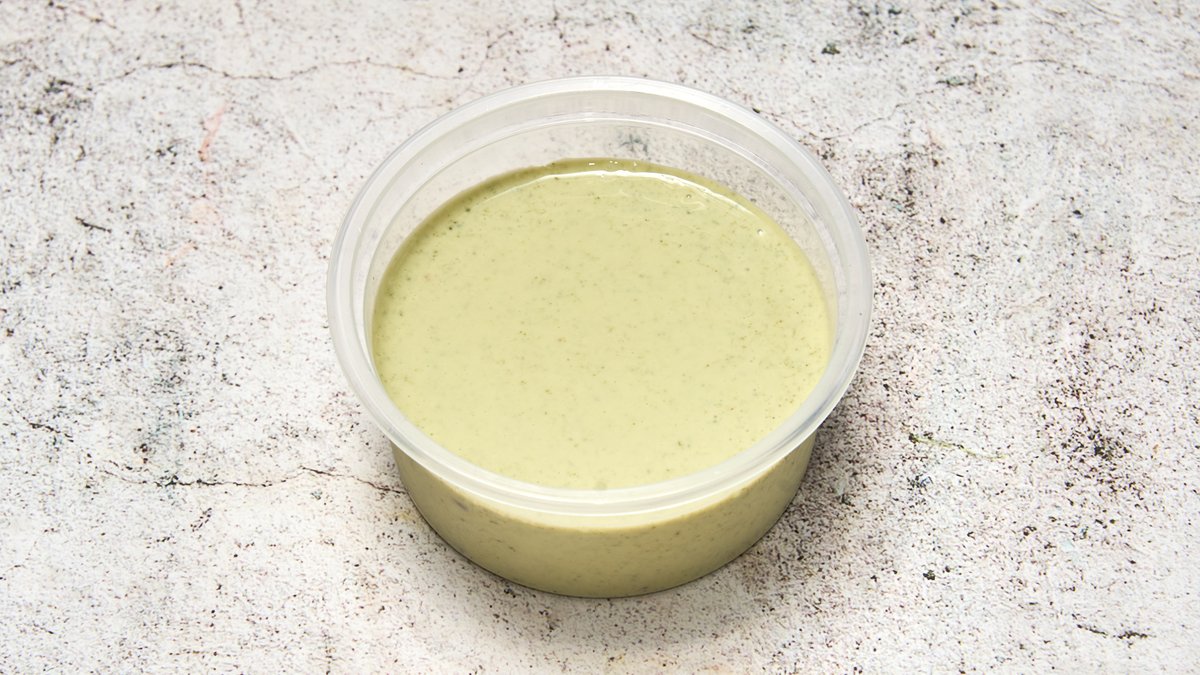 Yoghurtdressing med finthakkede grøntsager, kartoffel og friske urter.