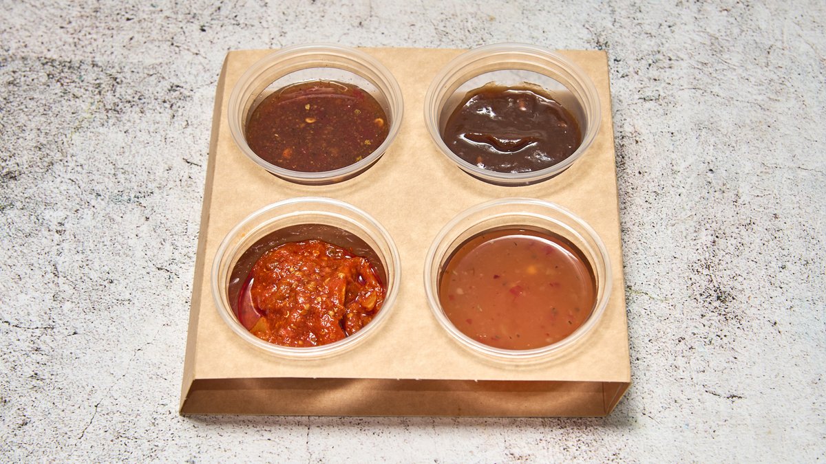 Mango-, tamarind-, kokosnød- og indisk picklechutney. Kan indeholde hårde kerner og frø.