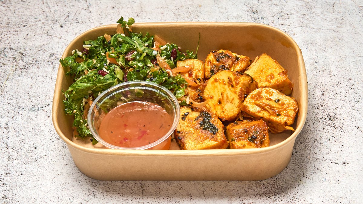En krydret fusion mellem nord- og sydindisk curry med valgfrit protein og knust rød chili. Uden tilbehør (ris/brød)