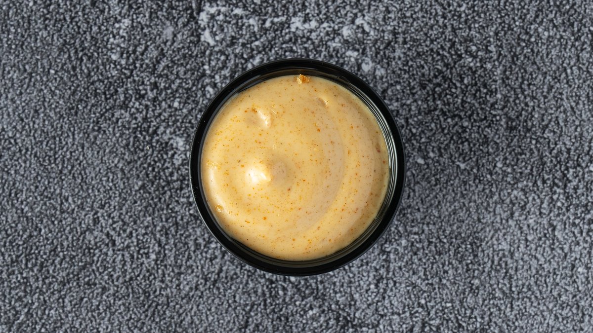 Burger with beef, cheese, ketchup and mayo. Served with fries, dip.