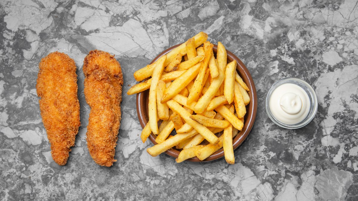 Super crispy chicken tenders, topped with ranch dressing and fresh herbs.