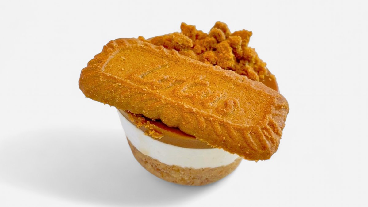 Cookie med biscoff smag og lys chokoladeovertræk.