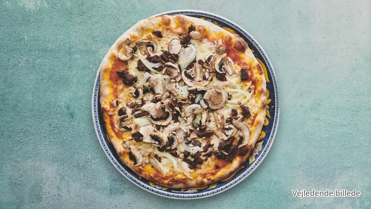 Tomat, ost, shawarma, gorgonzola, champignon, løg.