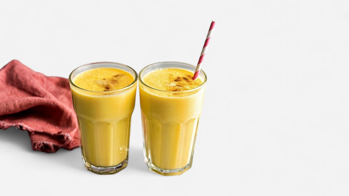 Cremet yoghurtdrik blandet med moden mango for en sød og forfriskende smag.