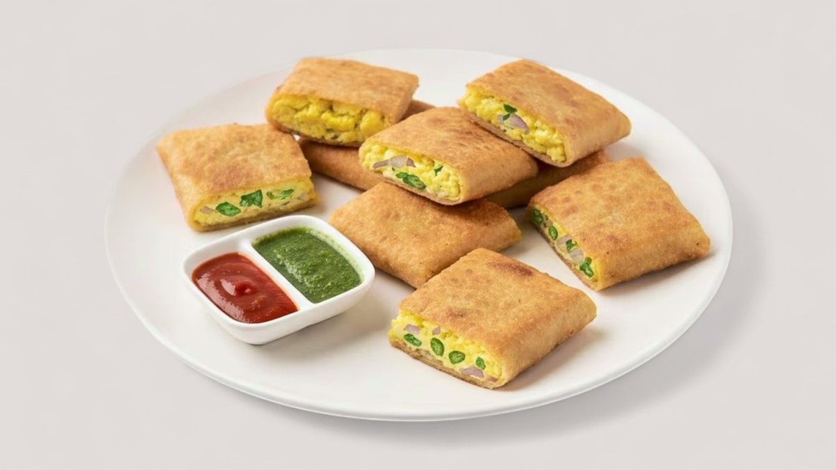 Smørblød paratha fyldt med krydrede æg og milde krydderier, stegt på panden til perfektion.