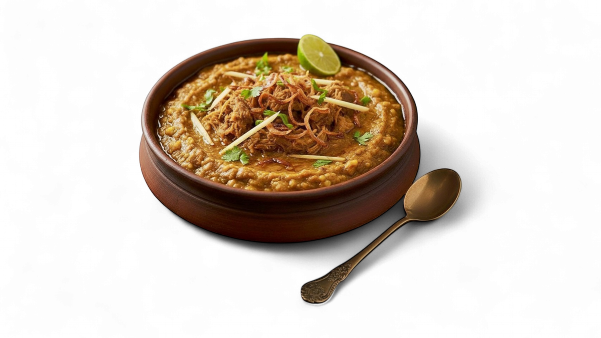 Smagfuld oksekødstehari serveret med sprøde snacks, chola, frisk salat, æbleskiver og søde dadler - et komplet og mættende Iftar-måltid lavet frisk til Ramadan.