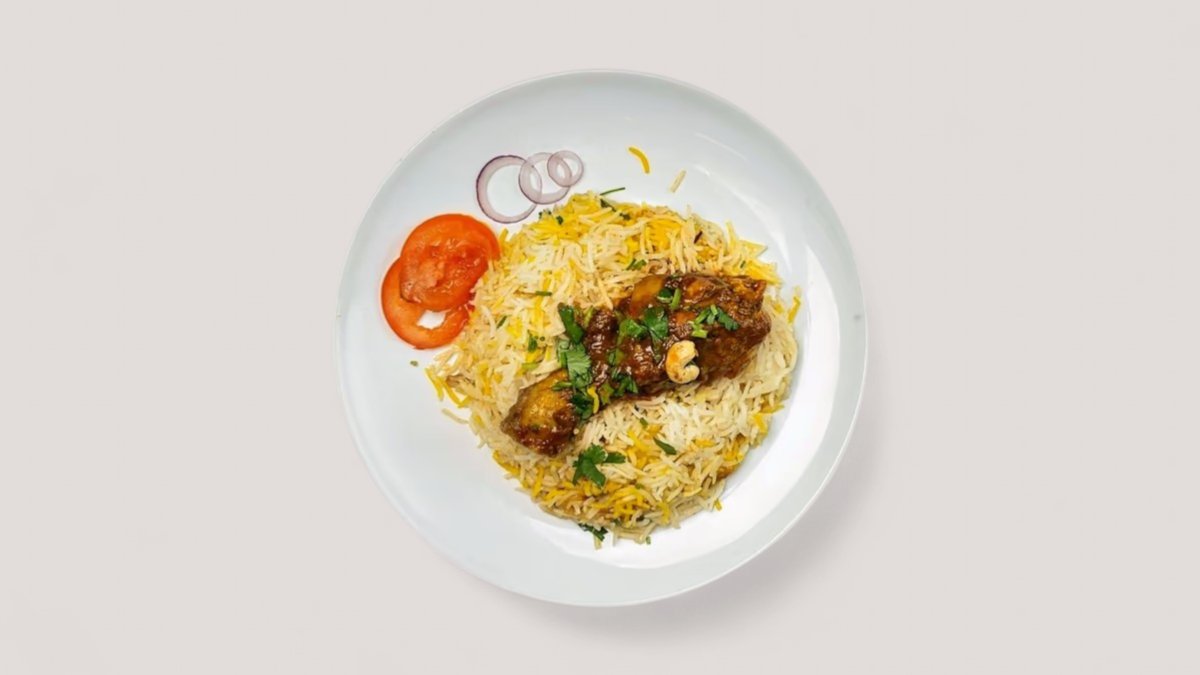 Traditionel bangladeshisk kacchi biryani med mørt halal-oksekød, basmatiris og aromatiske krydderier. Langsomt tilberedt for en dyb og fyldig smag.