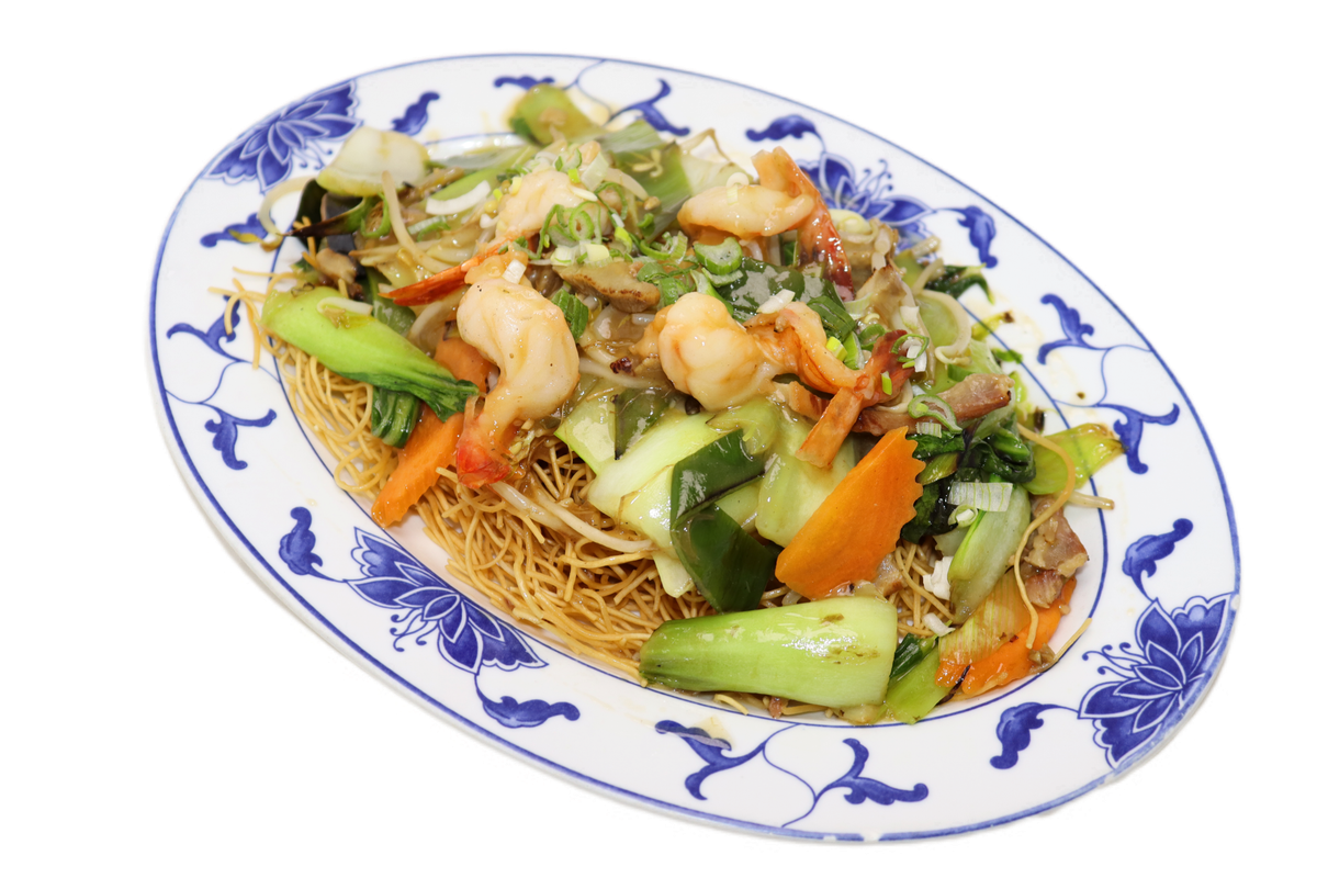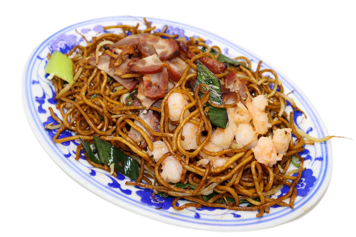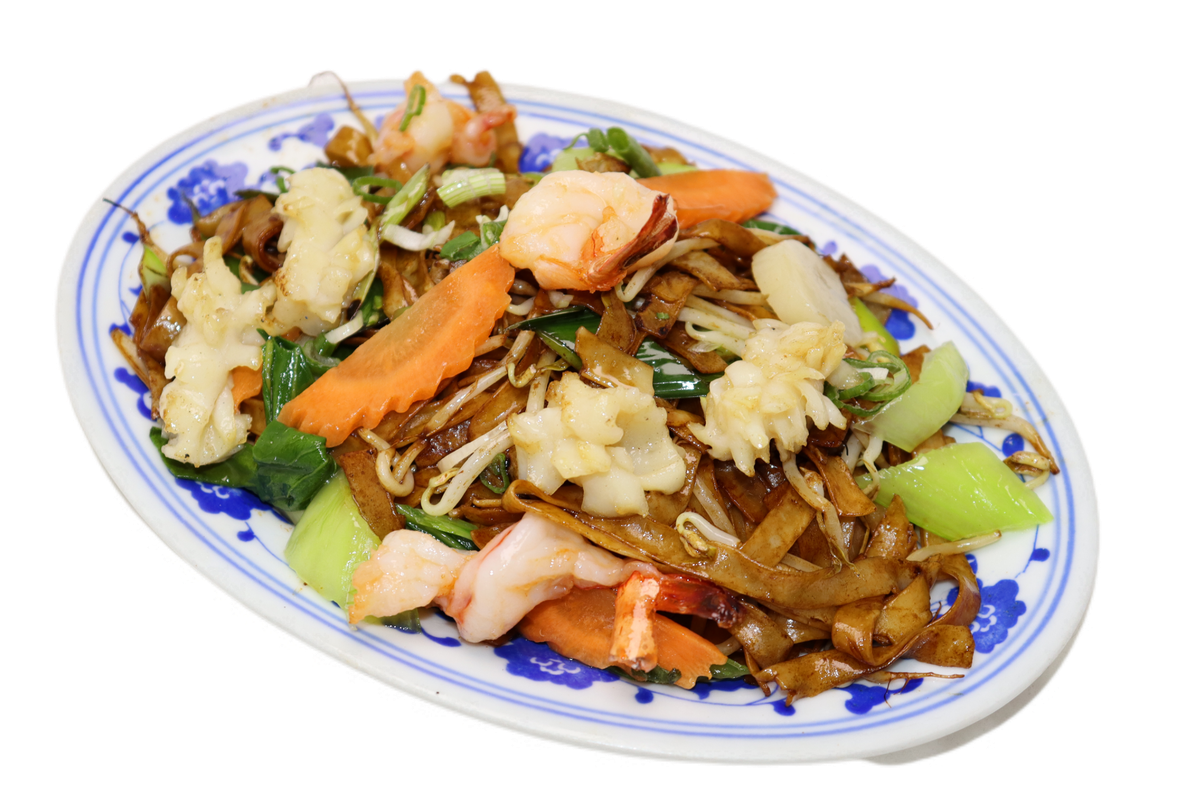 69. Stegte flodrisnudler med rejer & Char Shiu