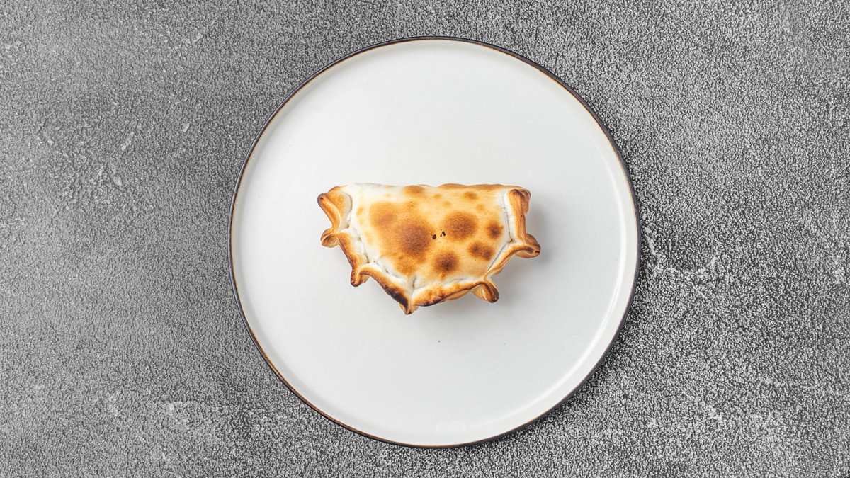 Lun empanada med fyld af oksekød, løg, paprika og hårdkogt æg. OBS: Restauranten anbefaler at lune empanadas i ovnen på 180 grader i 3-5 minutter for at de skal blive helt perfekte.