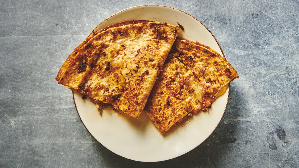 2 stk. Tortillas fyldt med smeltet ost, løg, koriander og valgfrit protein.
