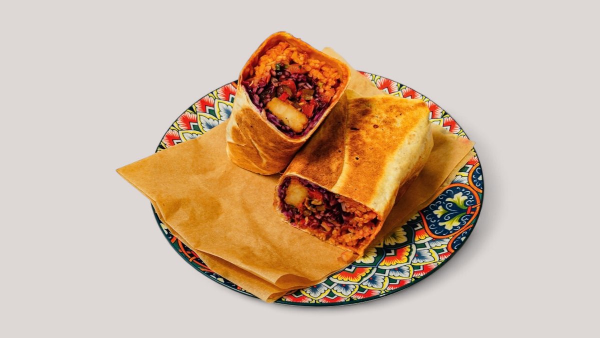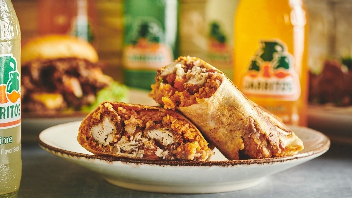 Én valgfri burrito, en valgfri Jarritos, hjemmelavede tortilla chips, salsa roja og pico de gallo.