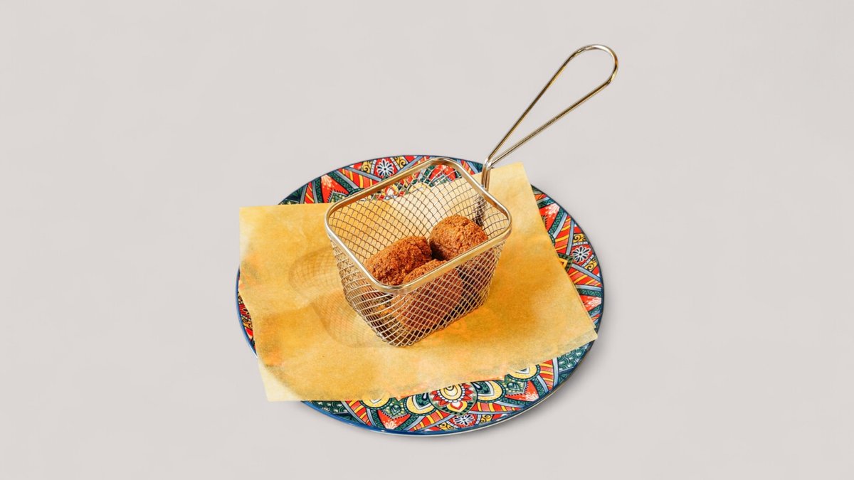 Falafel, grøntsagsblanding, rødkål, refried beans, ris, pico de gallo, smeltet ost og Hermanos sauce.