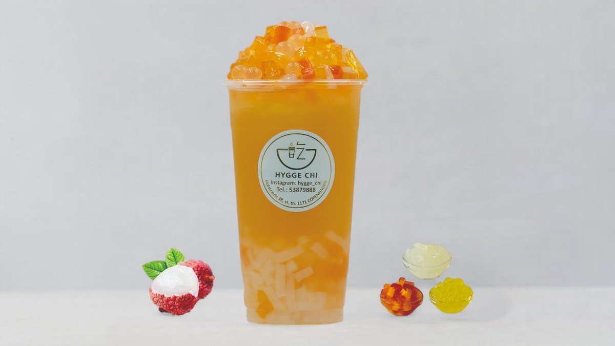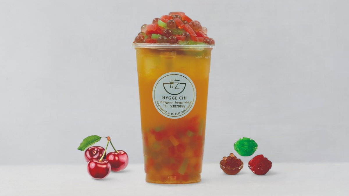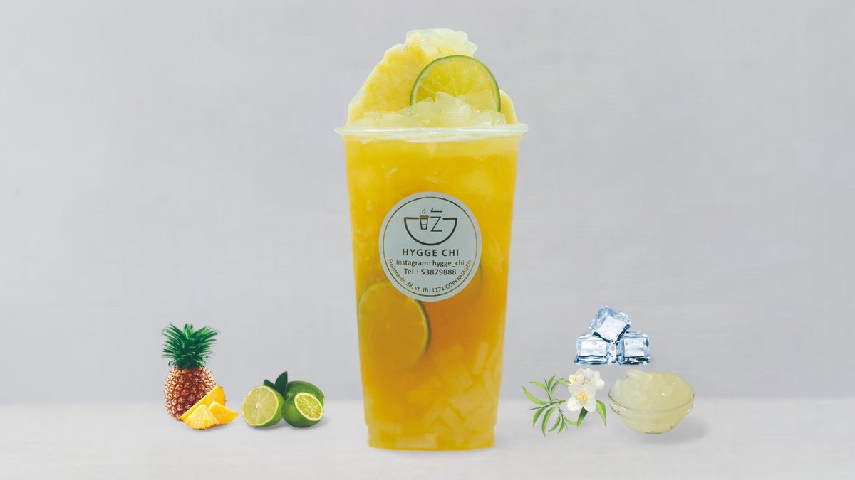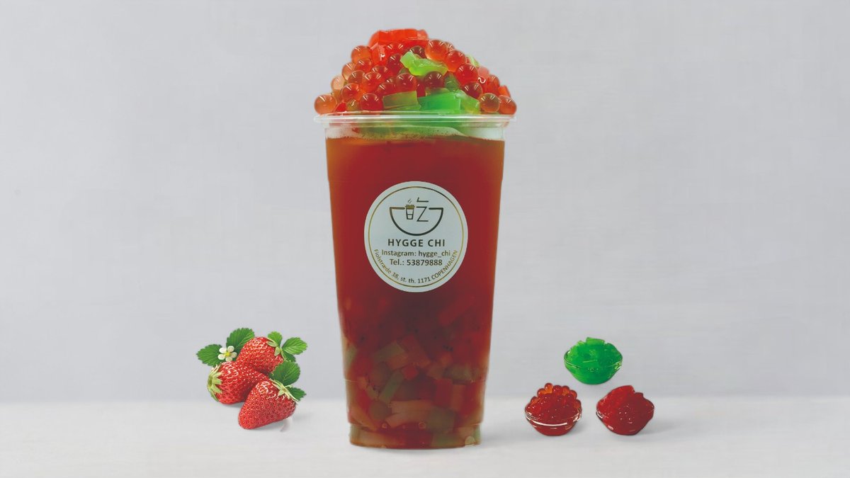 Kold drik lavet på friske sæsonbaserede frugt, øko lime, øko citron, grøn te og sukker. Serveres med op til 6 valgfri boba.