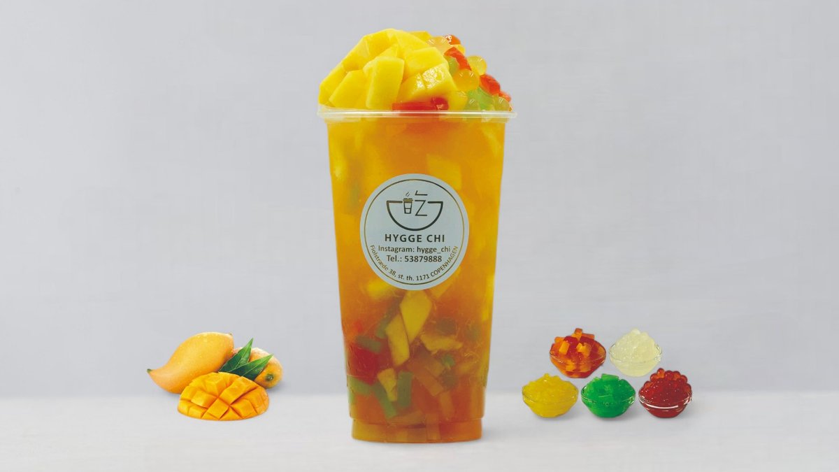 Kold drik lavet på frisk pureret mango, grøn te og sukker. Serveres med 5 valgfri boba.