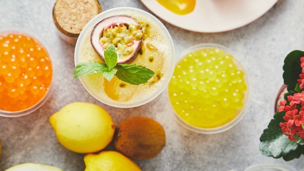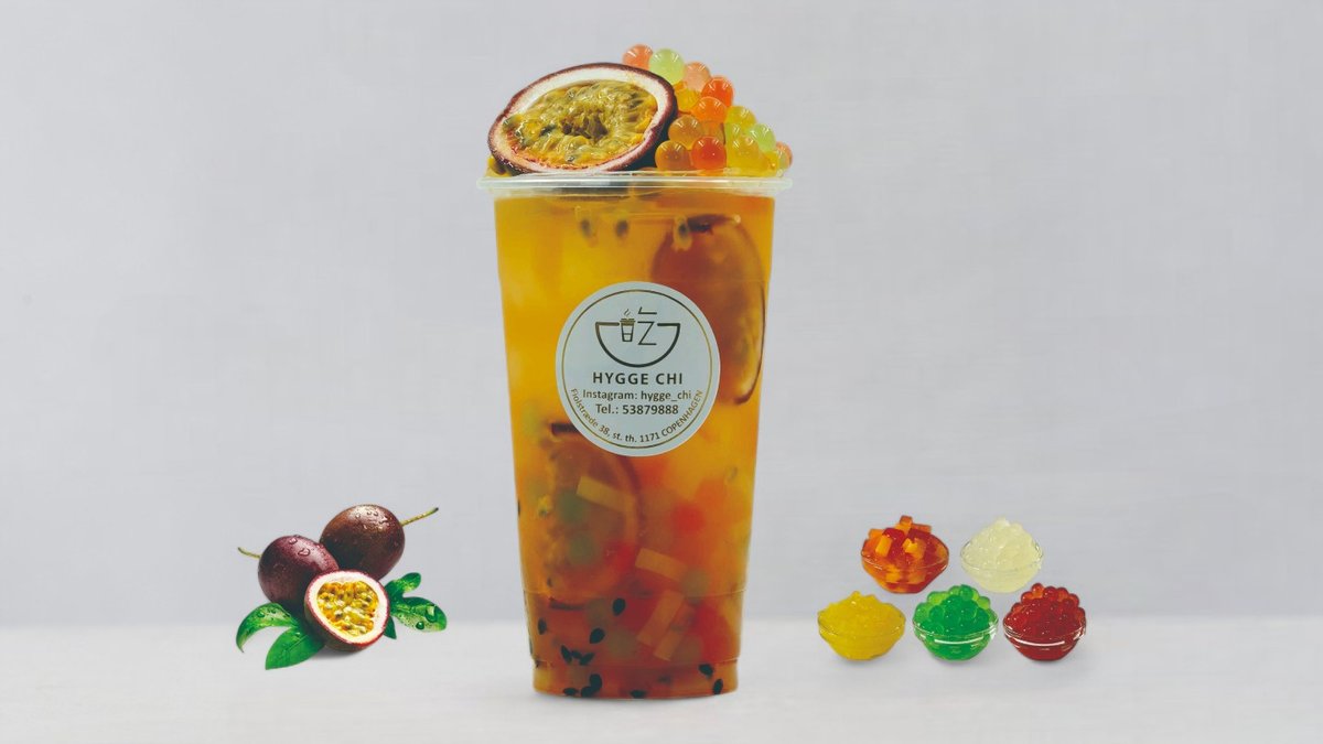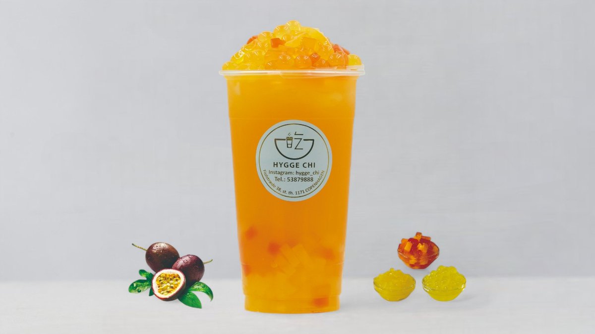 Kold drik lavet på frisk passionsfrugt, øko citron, grøn te og sukker. Serveres med 5 valgfri boba.