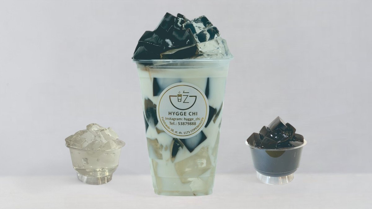 Kold drik lavet på sort og hvid bønnegelé med mælk, kokosmælk og sukker.