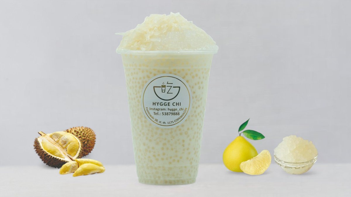 Kold durian, sago, pomelo, kokosmælk, mælk og sukker.