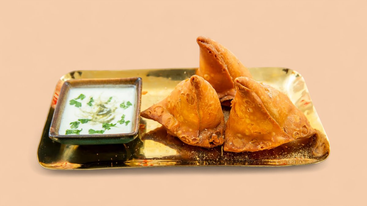 Vegetarisk samosa med fyld af kartofler og ærter.
