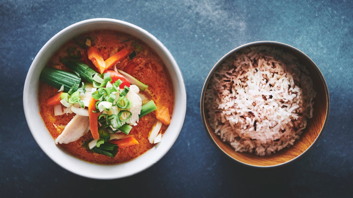 Rød karry med bambus, babymajs, thai auberginer, gulerødder og peberfrugt og thai basilikum