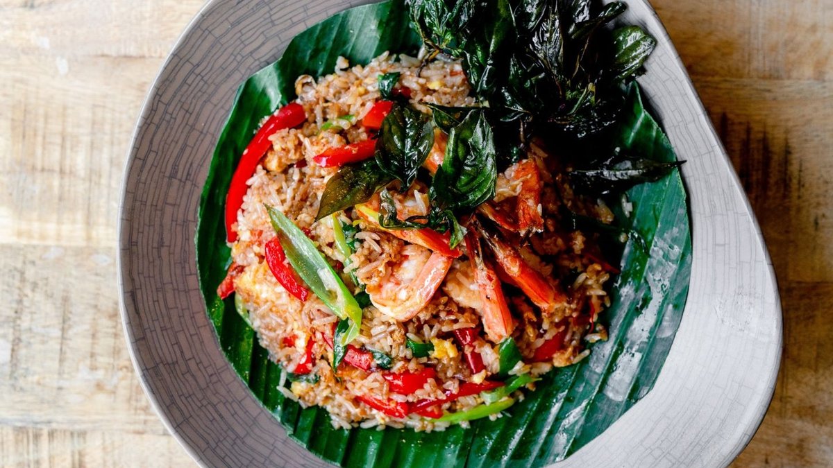Grovhakket kød i stærk thai basilikum, hvidløg, chili og lang bønner. Spejlæg og ris medfølger.