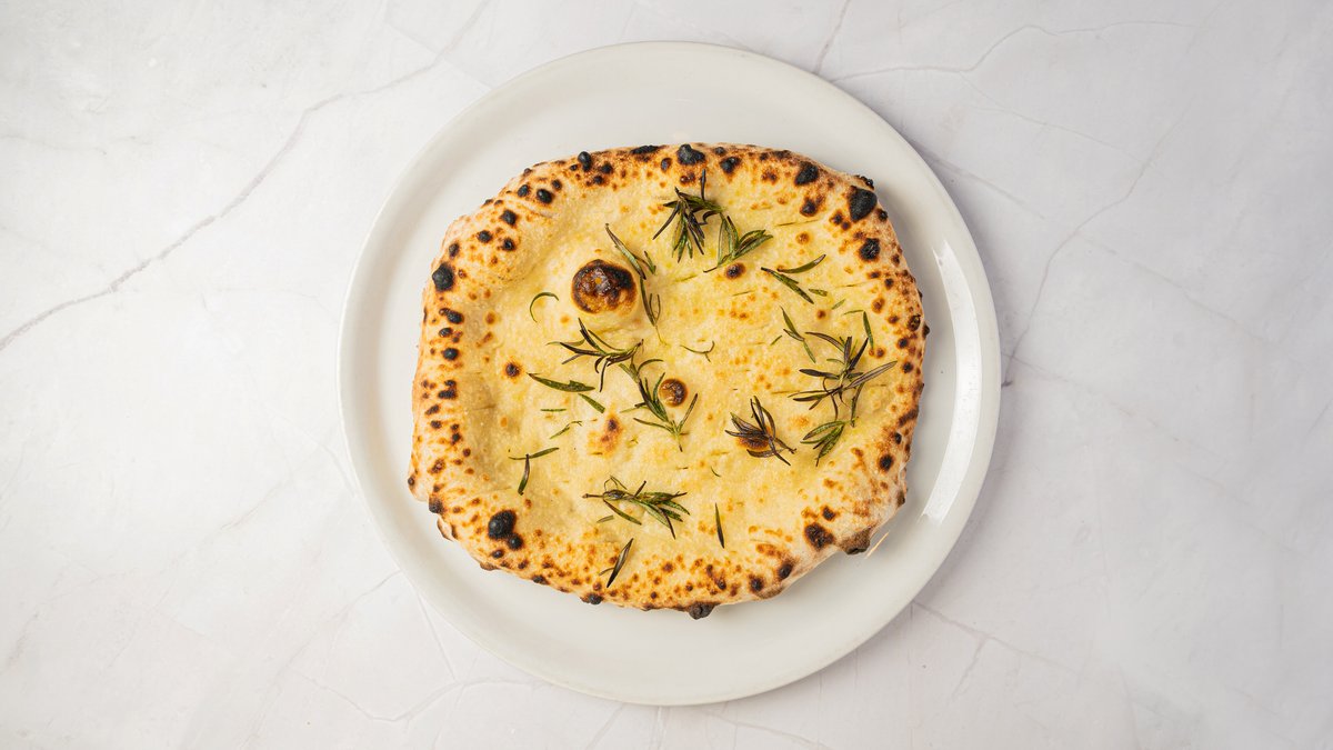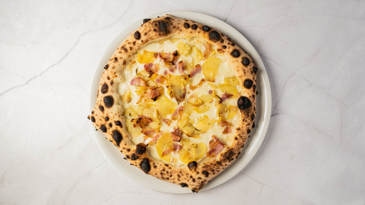 Mozzarella, kartoffel, guanciale og rosmarin.