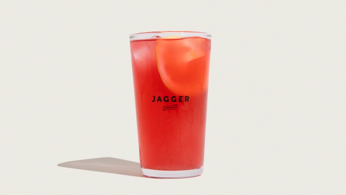 Vores økologiske, hjemmelavede lemonade med hindbær, solbær og citron.