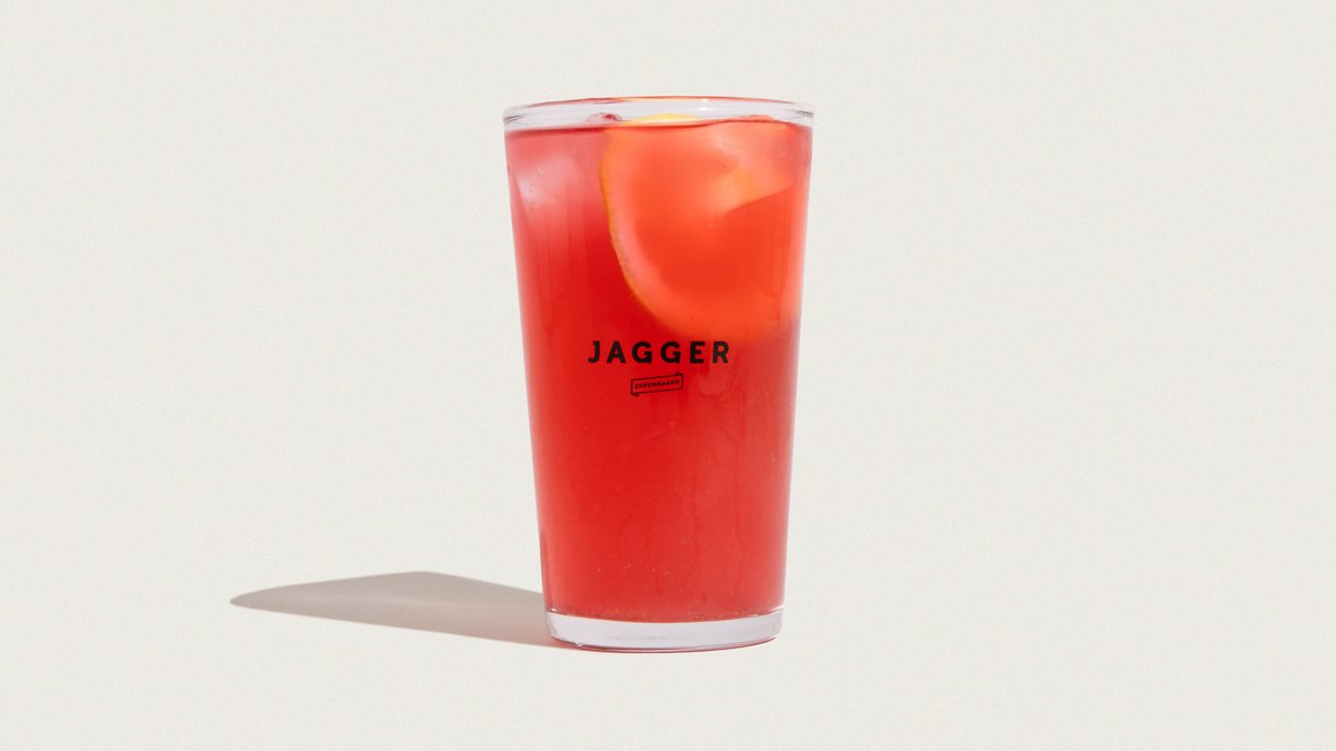 Vores økologiske, hjemmelavede lemonade med hindbær, solbær og citron.