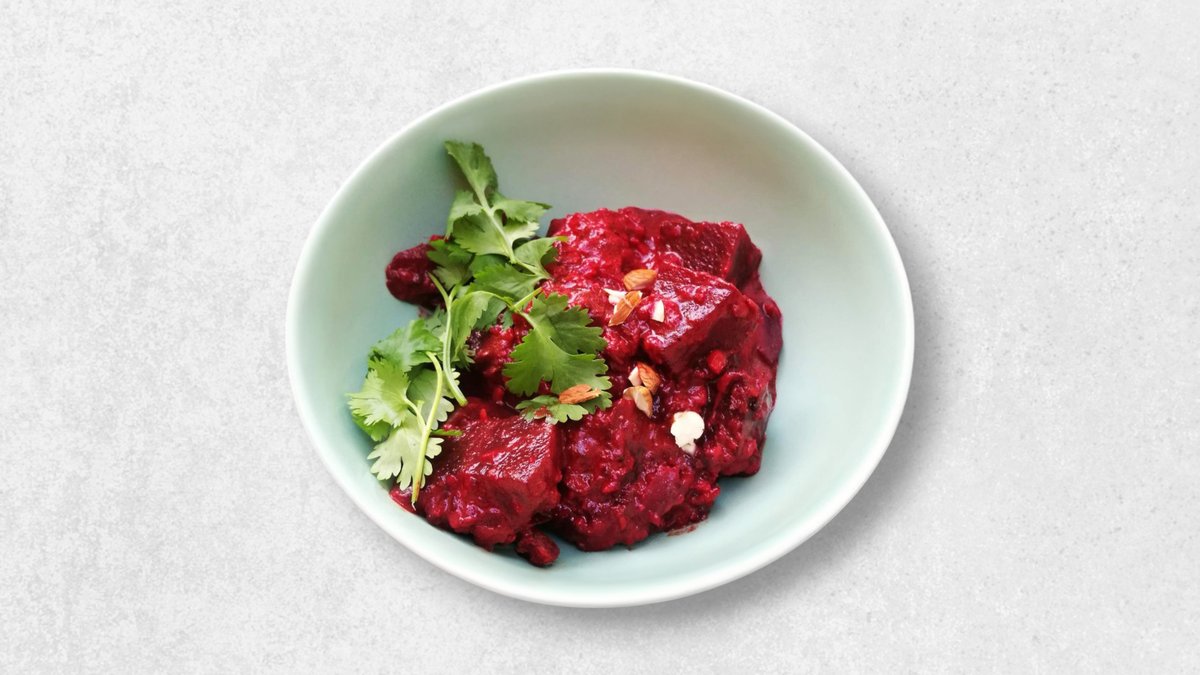 Sydindisk Rødbede masala tilberedt i mandel- og yoghurtbaseret sauce .