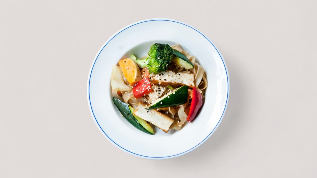 Chicken, noodles & vegetables in sesame, chili, ginger & soy