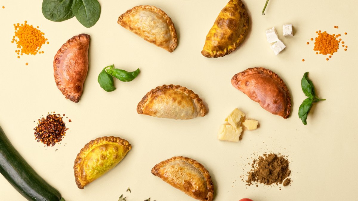 Empanada med fyld af halal oksekød, løg, tomat og peruviansk sød Ají Panca chili.