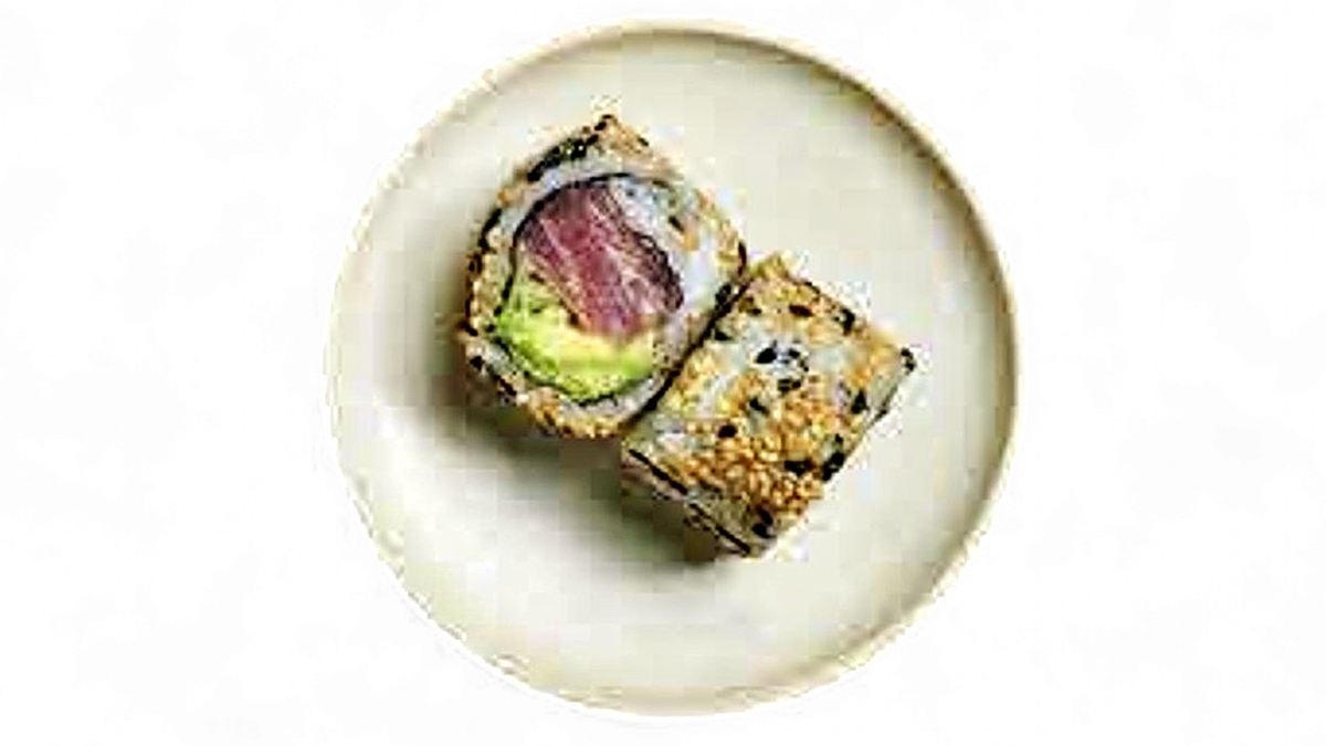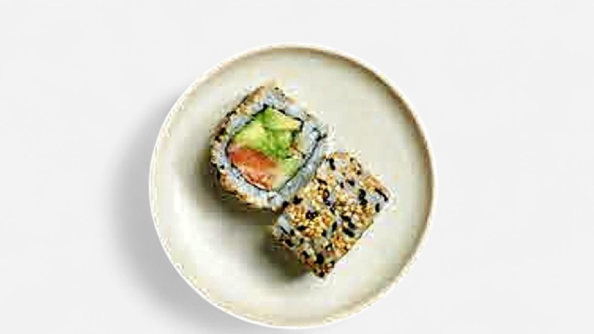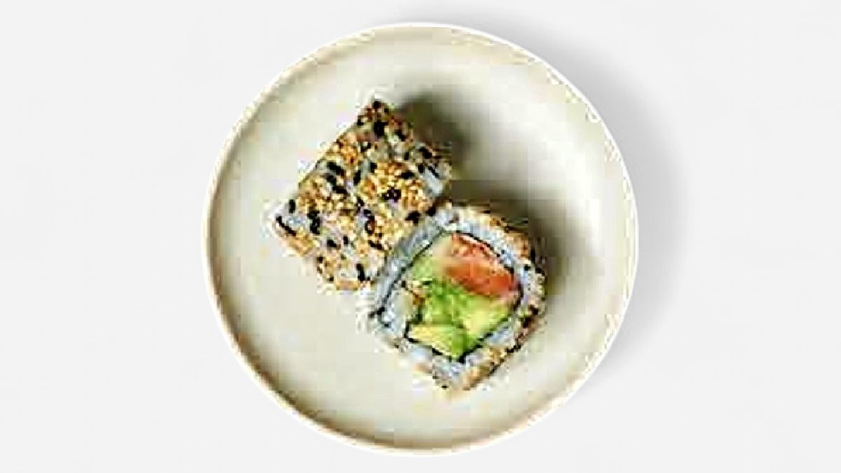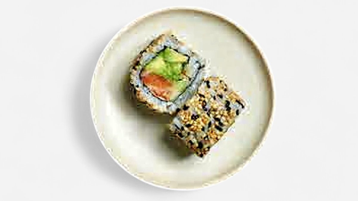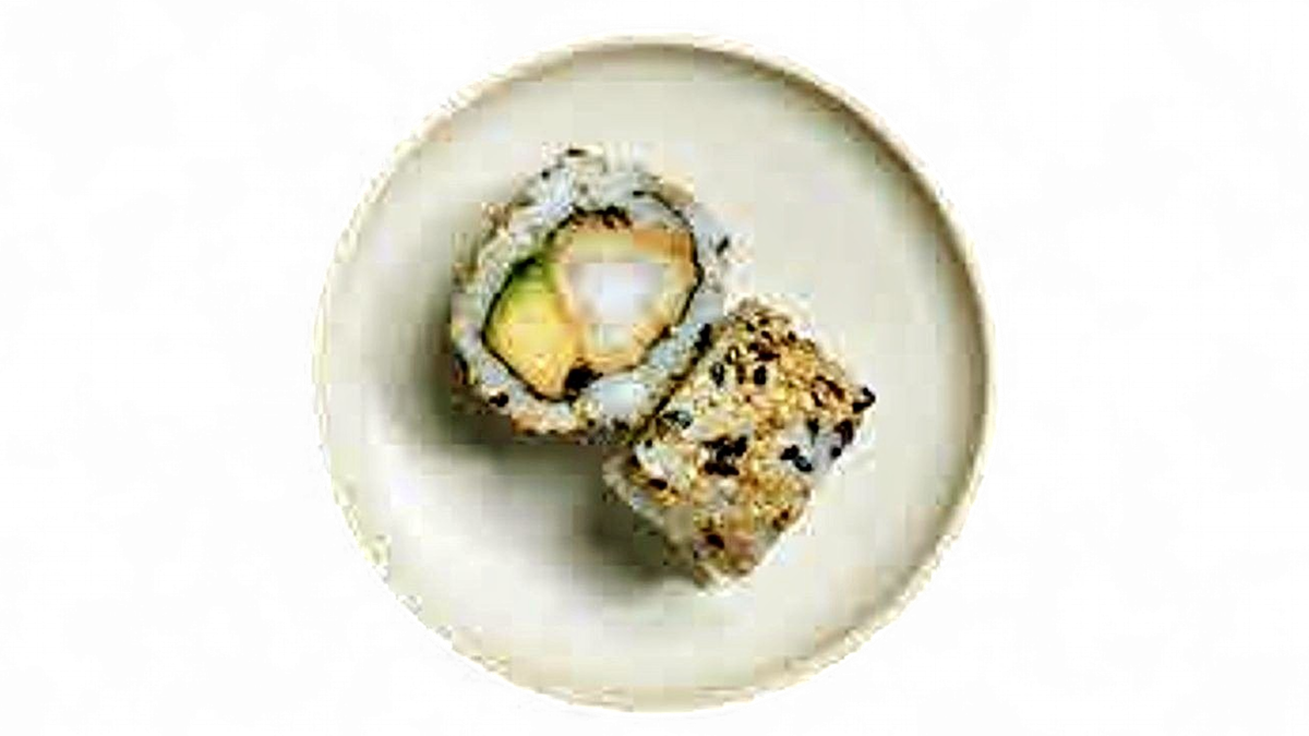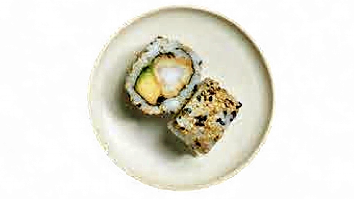 Laks, agurk, avocado og hvidløg rullet i sesam.