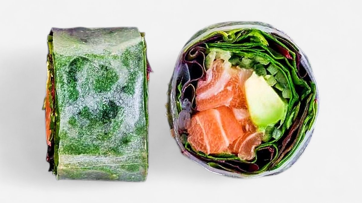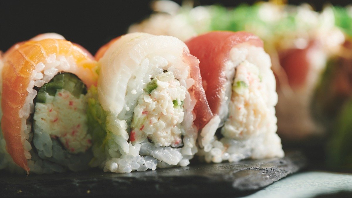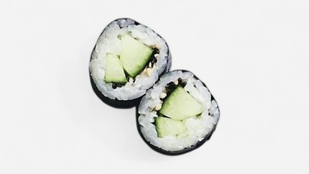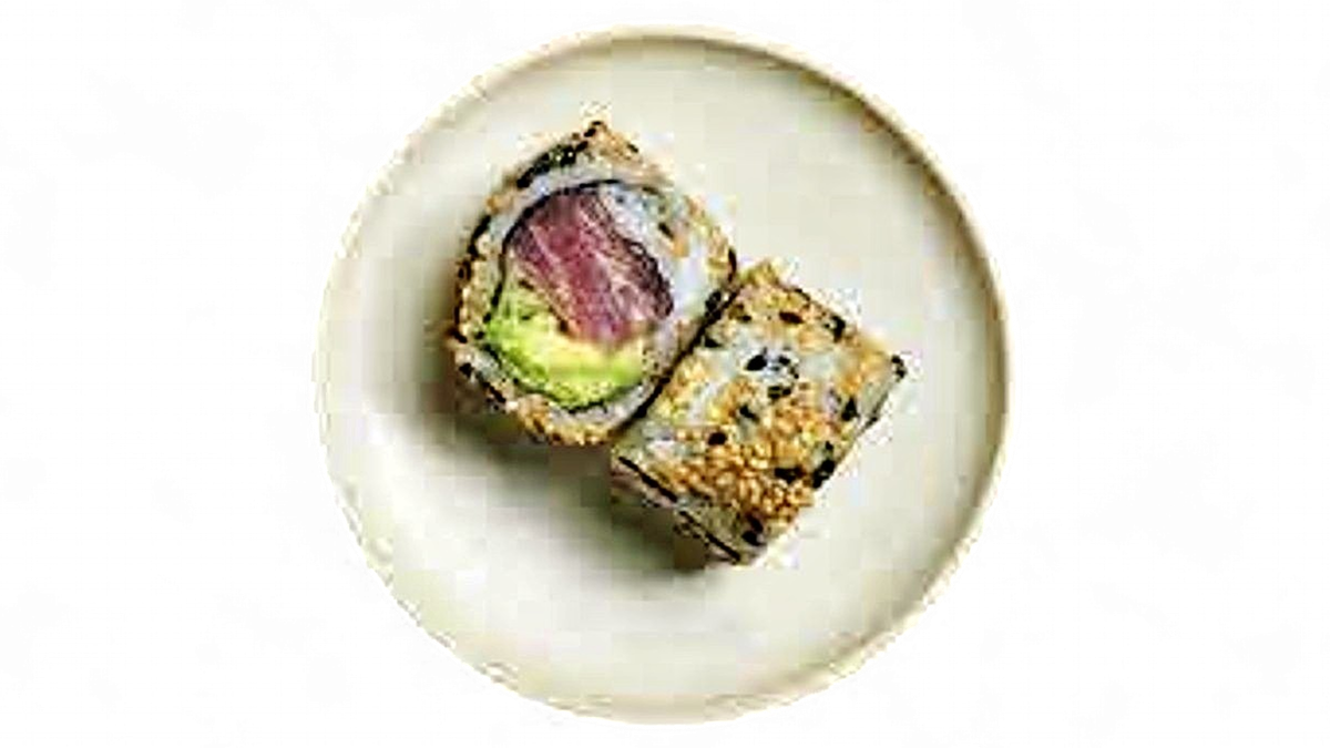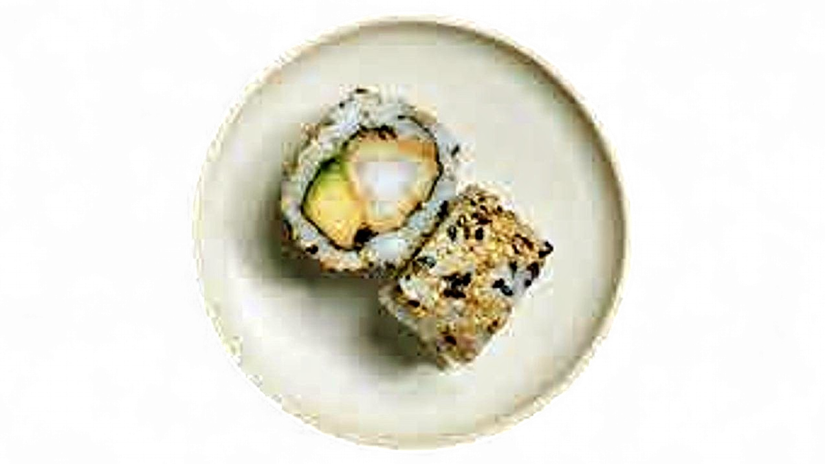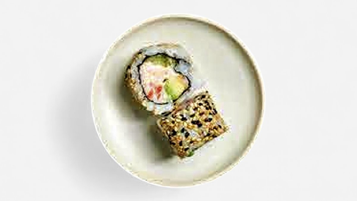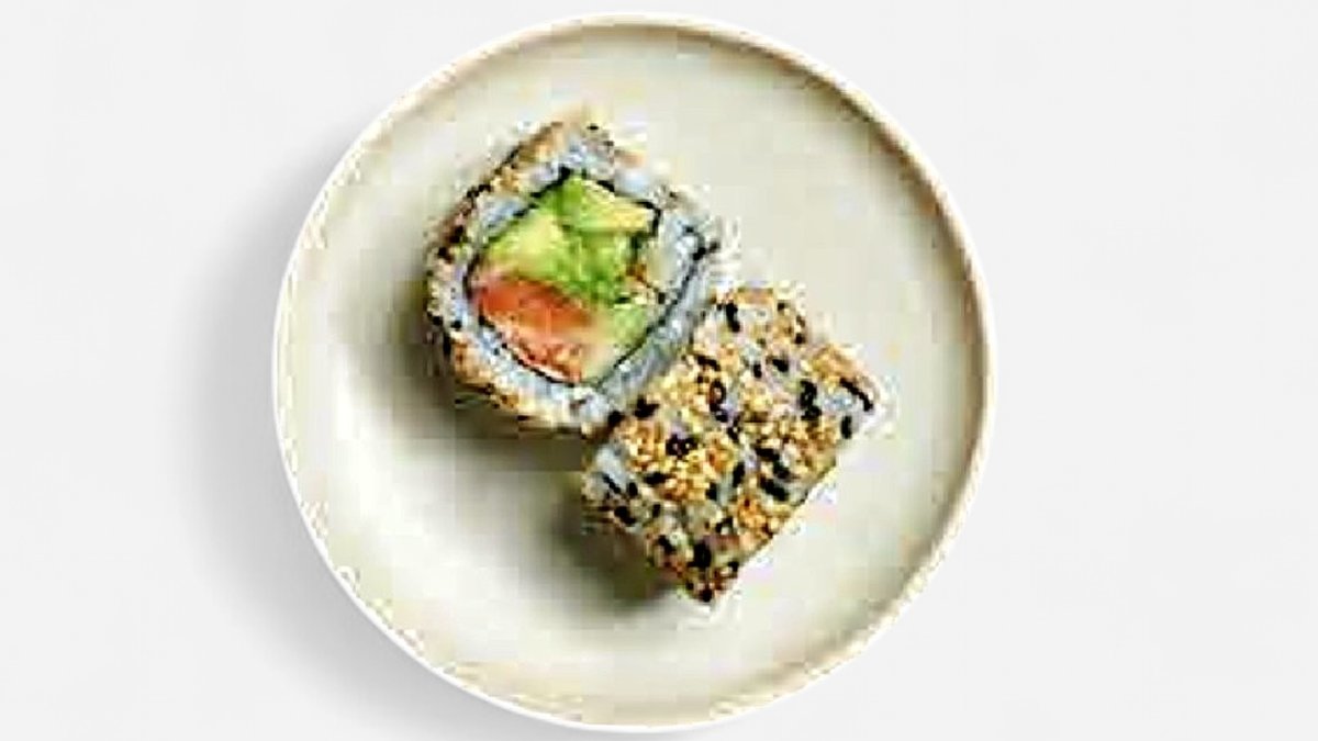 Laks, agurk, avocado og hvidløg rullet i sesam.