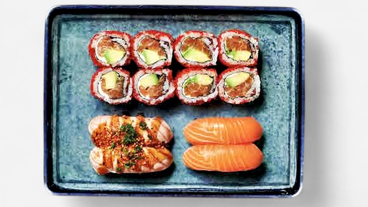 Nigiri 1 x laks 1 x reje Uramaki 8 x Ebi Furai Roll Futomaki 6 x California Big Roll