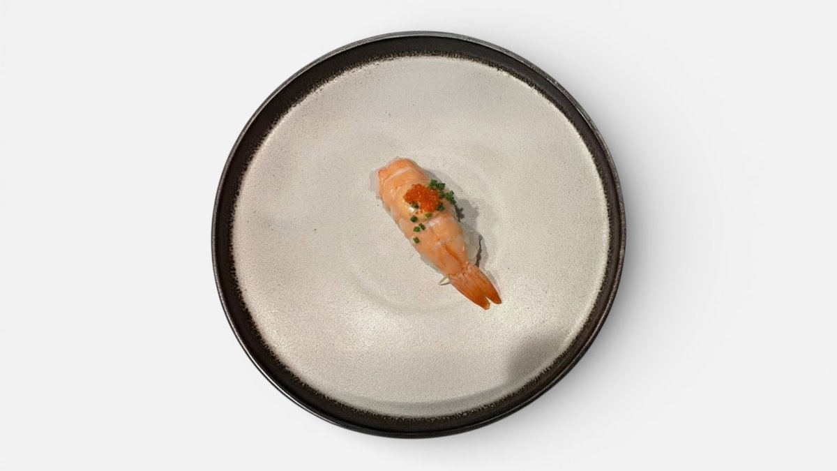 Ebi tempura rejer, avocado, agurk, spicy sauce og teriyakisauce rullet i sesam.