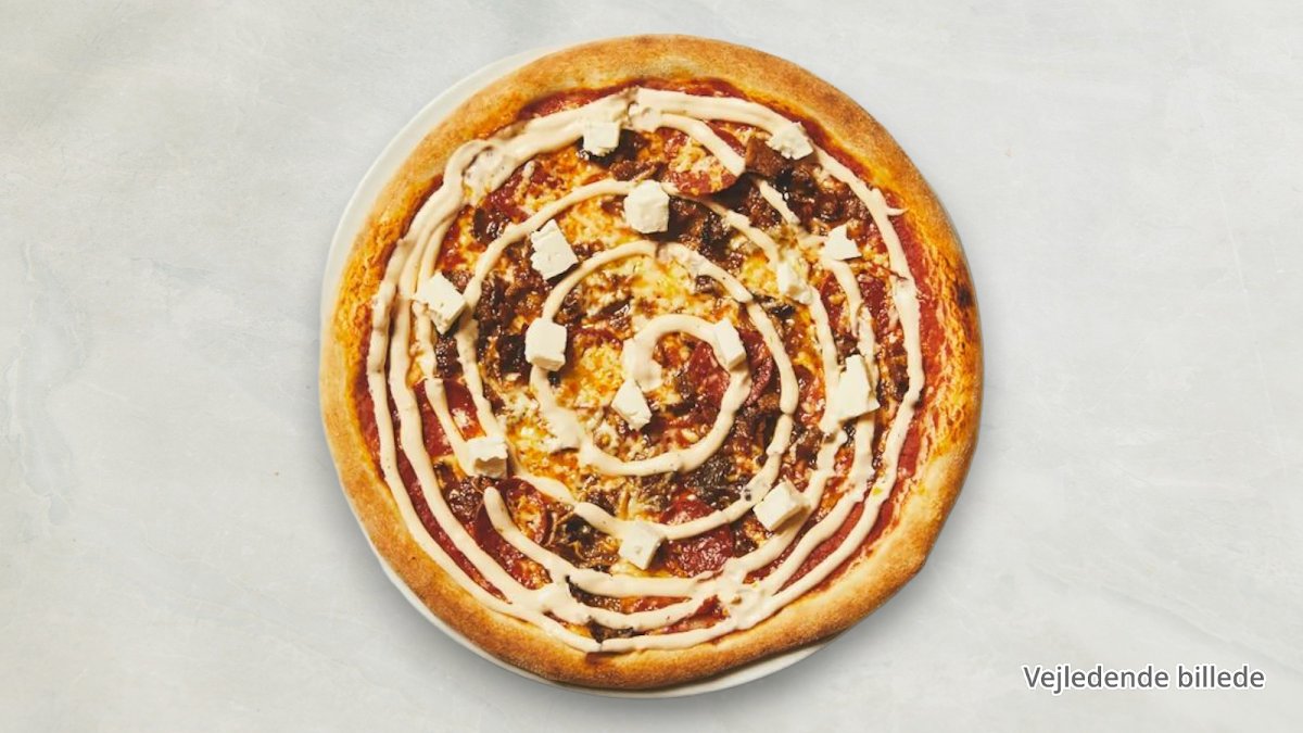 Tomatsauce, ost, oregano, kødboller, pepperoni og creme fraiche. Serveres med valgfri sodavand.
