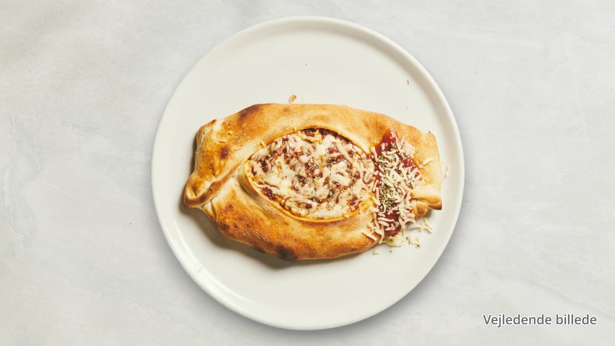 Pizzasandwich med fyld af valgfrit protein, ost, tomat, agurk, icebergsalat og dressing.