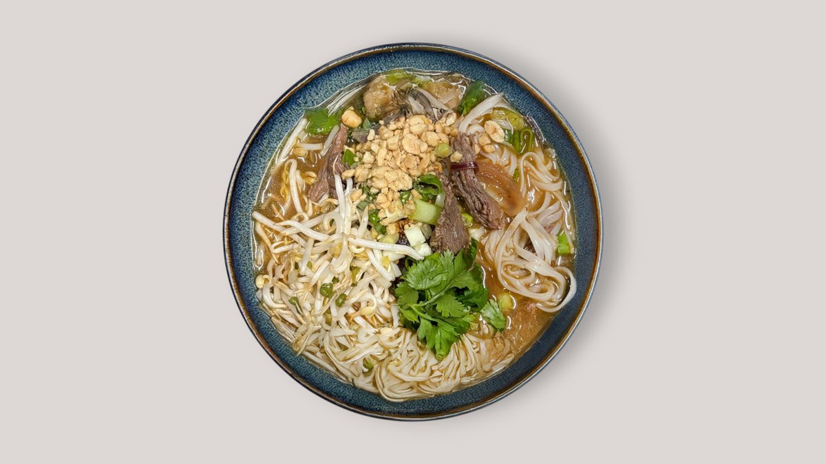 Klassisk thailandsk ret med stegte nudler, æg, bønnespirer, porrer. Toppet med knust peanuts. Vælg selv protein til retten.