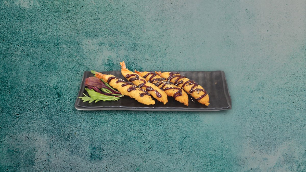 Tempurarejer med sesam og teriyaki sauce.