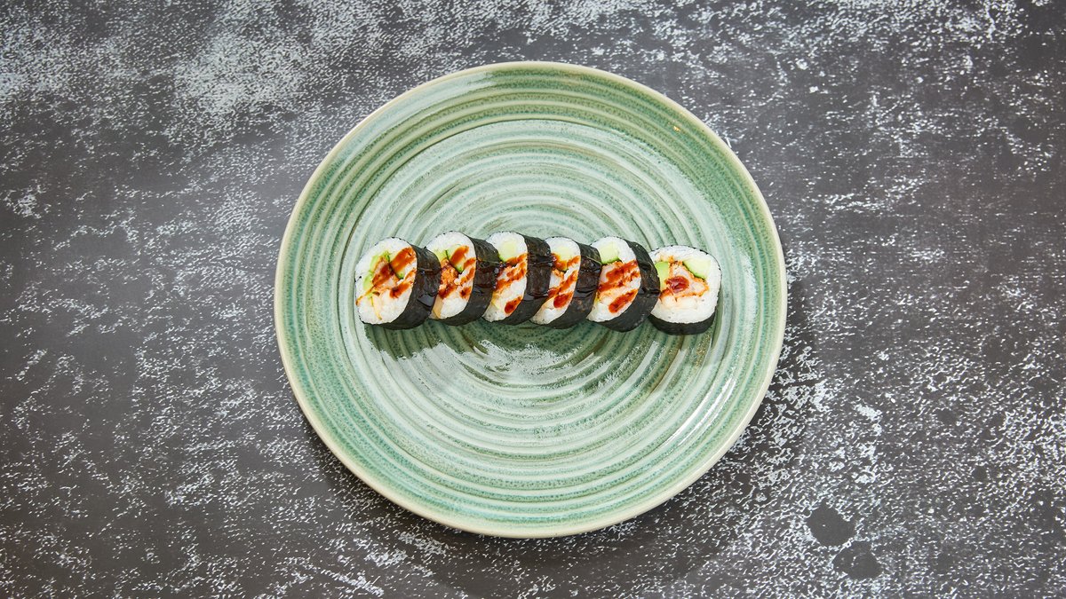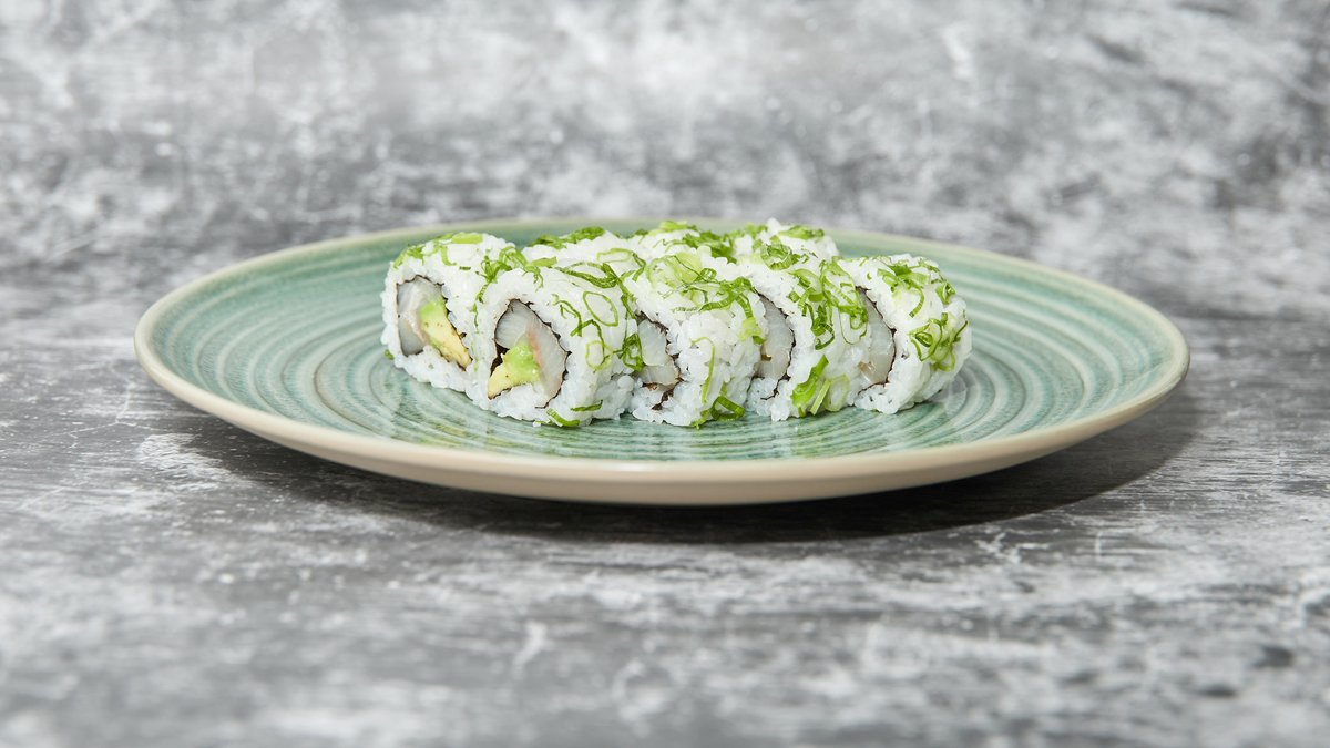 Shrimp, creme cheese, avocado, carrot, cucumber, spicy mayo, black & white sesame (B, D, E, G)