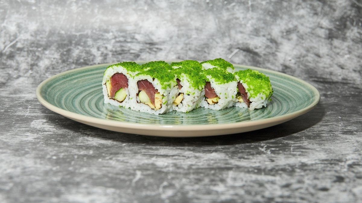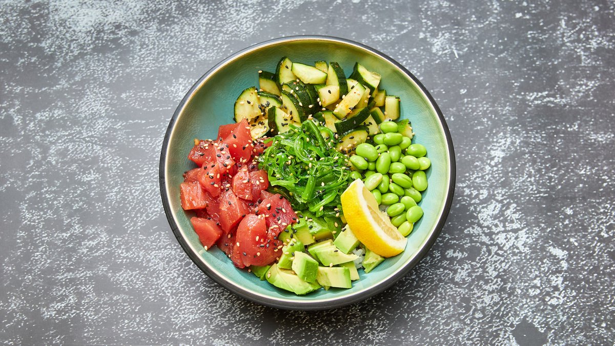 Tun, wakame, ris, avocado, edamamebønner, agurk og chili-lime soya.