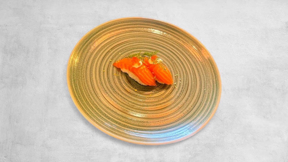 NIGIRI mix consisting of the following nigiri from the menu: (2) Avocado Nigiri, (2) Shrimp Nigiri, (2) Salmon Nigiri, (2) Gravlax Salmon Nigiri, and (2) Tuna. Served together with pickled ginger & wasabi on the side. Check Nigiri categories for individual pictures.