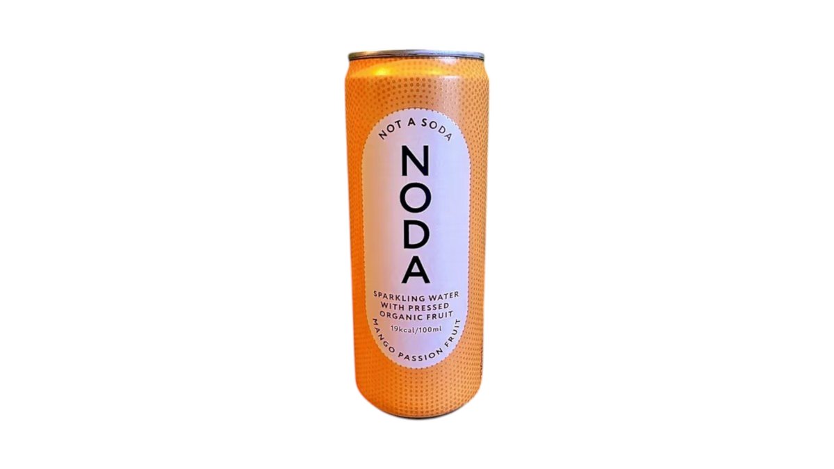 Noda Mango Passion Fruit Sparkling Water with pressed organic fruit.
