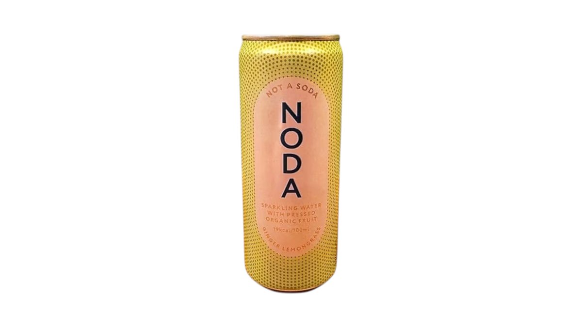 Noda Ginger Lemongrass Sparkling Water with pressed organic fruit.
