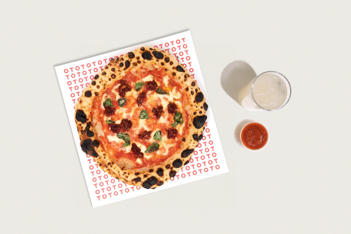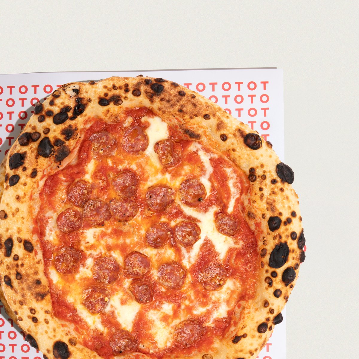 Lunch size pizza med økologisk 'Nduja, tomat, mozzarella, basilikum, parmesan. Inkl. valgfri drikkevare og crust dip.