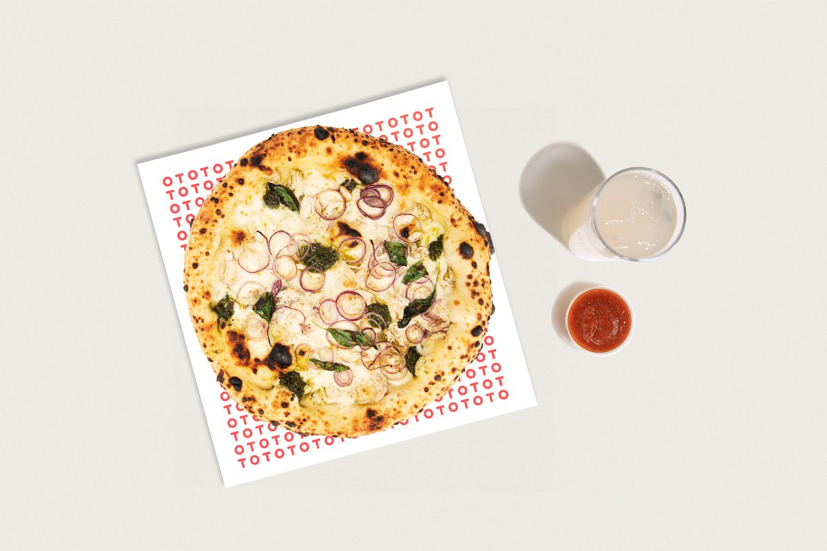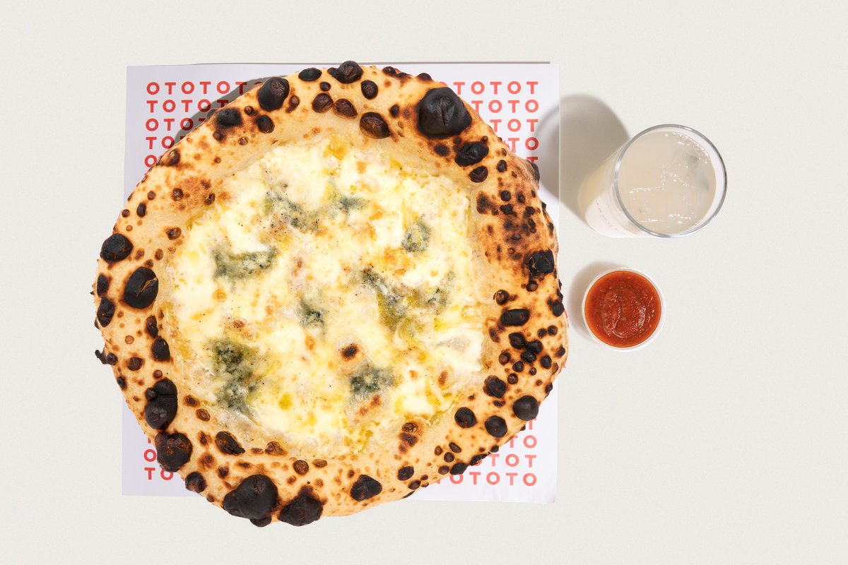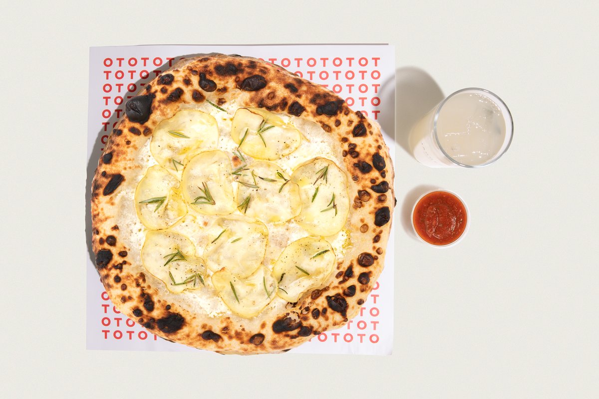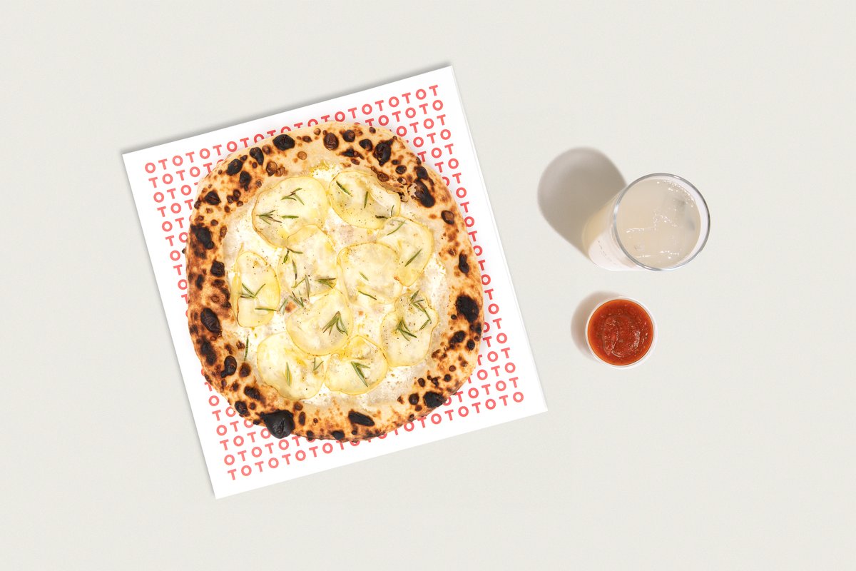 Lunch size pizza med Kartoffel, mascarponecreme, mozzarella, rosmarin, parmesan, sort peber. Inkl. valgfri drikkevare og crust dip.
