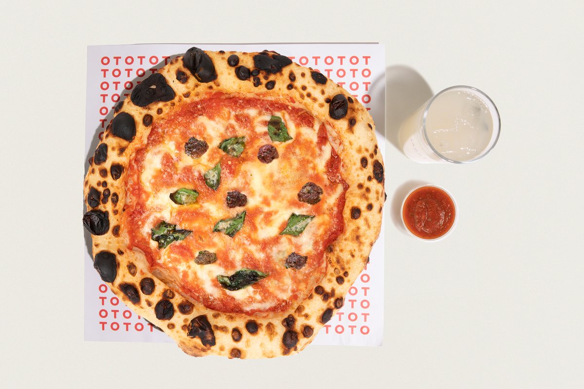 Økologisk salsiccia, mozzarella, tomat, frisk oregano, parmesan. Serveres med en crust dip og valgfri drikkevare.
