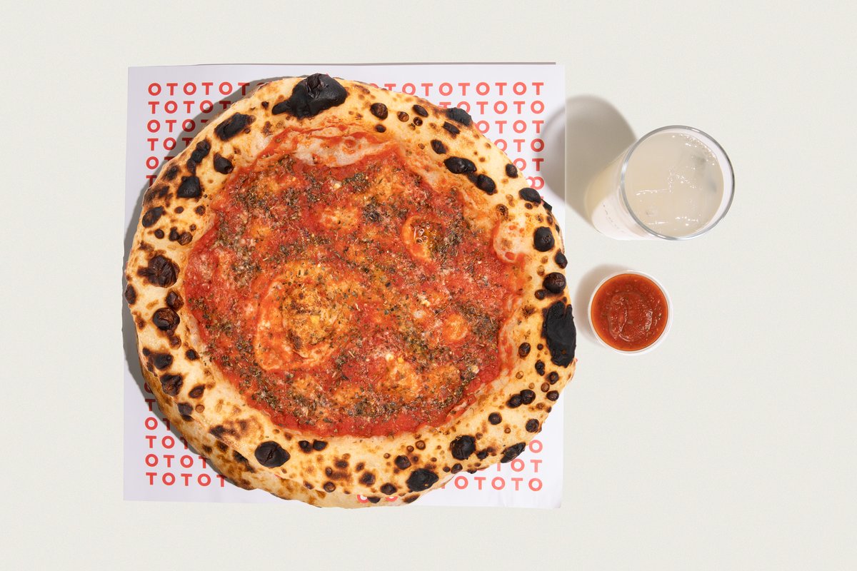 Tomat, hvidløg, tørret oregano og parmesan. Serveres med en crust dip og valgfri drikkevare.