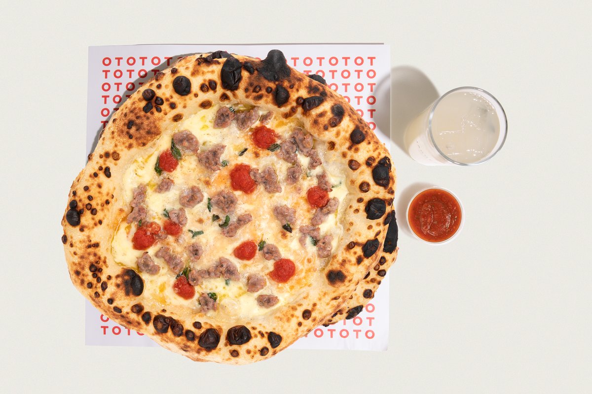 Økologisk salsiccia, mozzarella, tomat, frisk oregano, parmesan.