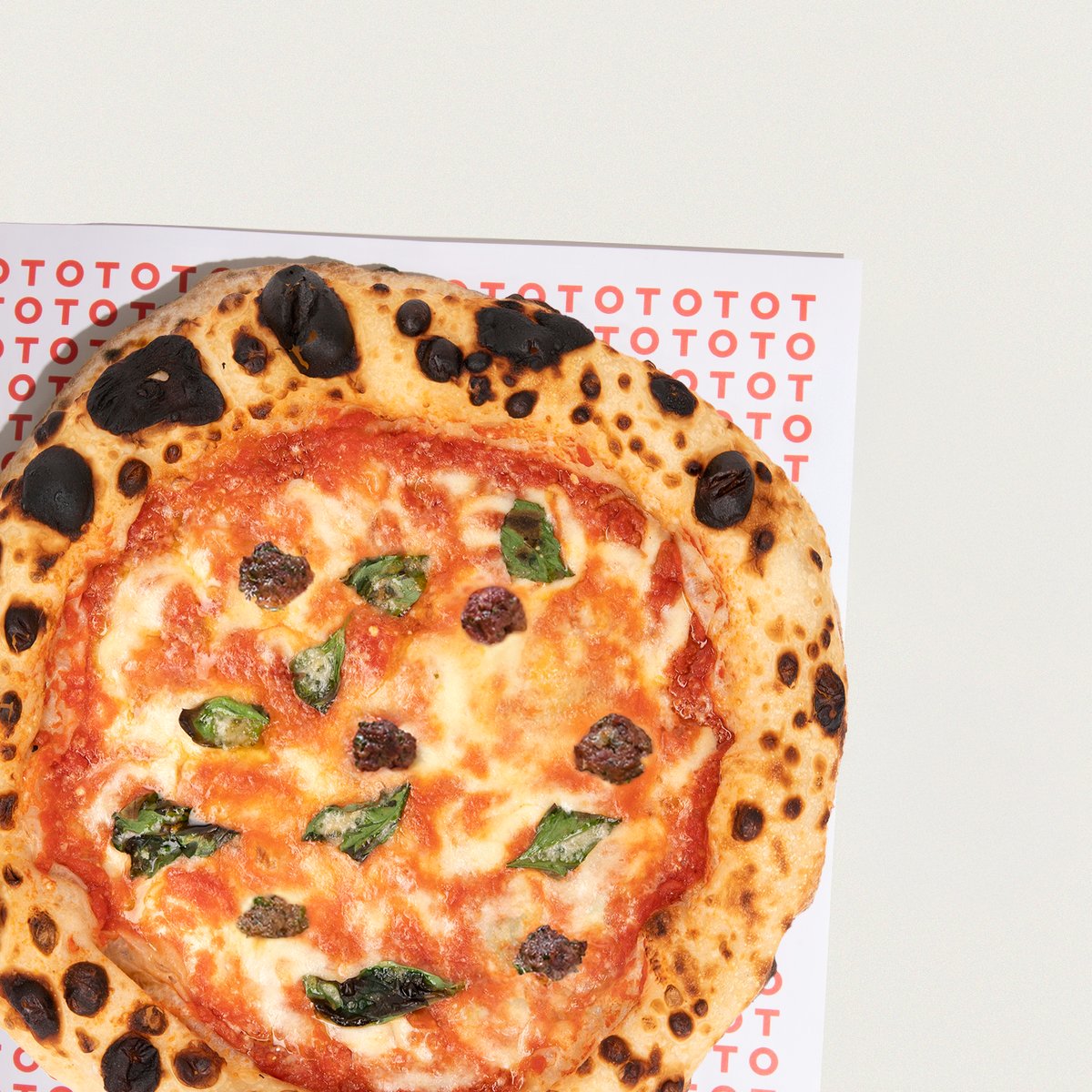 Økologisk 'Nduja, tomat, mozzarella, basilikum, parmesan. Serveres med en valgfri crust dip og drikkevare.